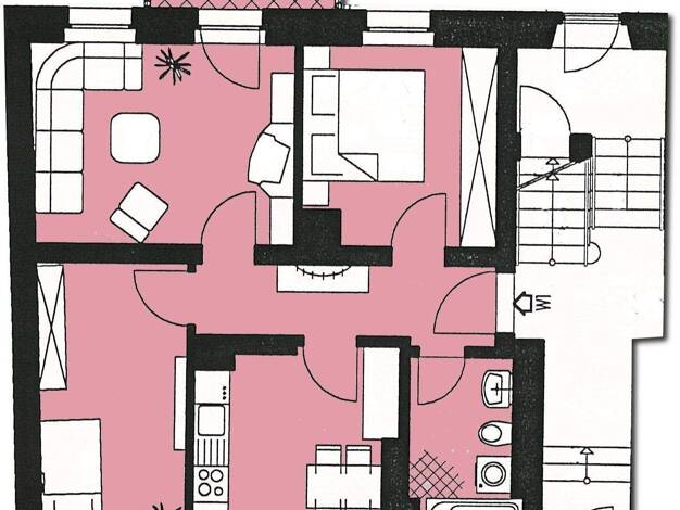 Die Wohnung befindet sich im Erdgeschoss (Hochparterre) eines Mehrfamilienhauses. Die Wohnung ist großzügig geschnitten und verfügt über zwei Bäder (ein Tageslichtbad mit Wanne/WC und ein innenliegen...