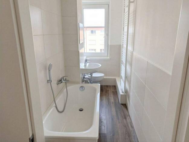Ihre neue Wohnung befindet sich im 4. Obergeschoss eines sanierten Mehrfamilienhauses. Es finden aktuell gerade Instandhaltungsarbeiten in der Wohneinheit statt. Bei den gezeigten Bildern handelt es sich um Beispielbilder.