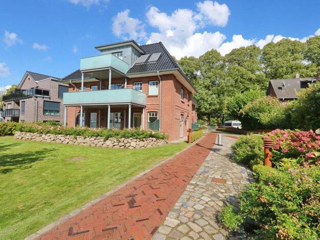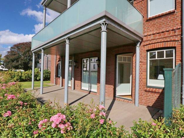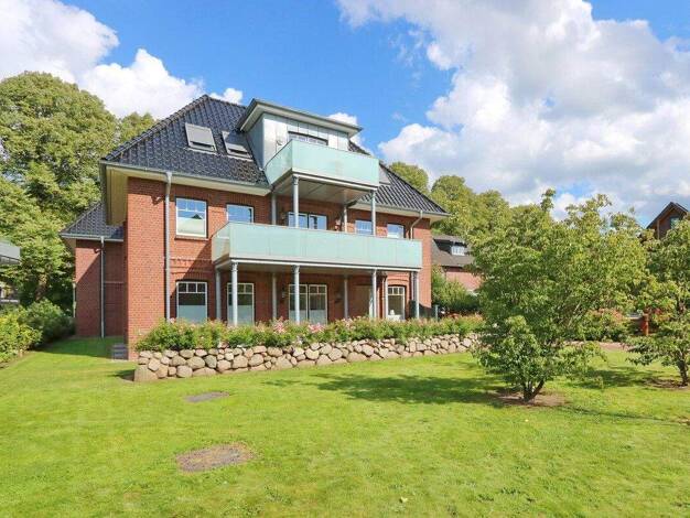 Die Immobilie liegt in einer 2013 errichteten Wohnanlage in ruhiger Lage, die sich perfekt in Rotklinkeroptik und moderner Architektur in die Umgebung einpasst. Der äußere Blick auf dem Grundstück di...
