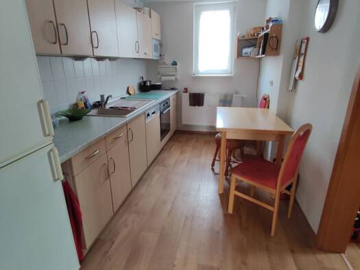 Ruhige, frisch sanierte 2,5-Zimmer-Wohnung mit Fußbodenheizung und moderner Einbauküche. Die Wohnung befindet sich im Erdgeschoss eines Anbaus und bietet dadurch eine besonders angenehme, ruhige Wohnlage. Eine Parkmöglichkeit befindet sich direkt neben dem Anbau und sorgt für zusätzlichen Komfort. Die Raumaufteilung umfasst ein Schlafzimmer, ein weiteres Zimmer (z. B. als Arbeits- oder Abstellraum nutzbar) sowie einen großzügigen Wohn- und Essbereich mit offener Küche. Die integrierte Einbauküc...