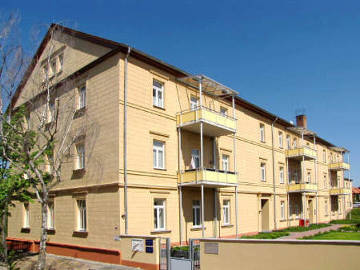 Die 2-Raumwohnung befindet sich im Erdgeschoß eines Mehrfamilienhauses. Vom Flur aus sind alle Räume der Wohnung direkt erreichbar. Das Wohnzimmer sowie das Schlafzimmer sind mit PVC-Belag in Holzoptik ausgestattet. In der Küche wurden Bodenfliesen verlegt. Ein Elektroherdanschluss ist vorhanden. Das Tageslichtbad ist vollständig gefliest und verfügt über eine Badewanne sowie ein WC. Zudem ist ein Waschmaschinenanschluss vorhanden. Ein Stellplatz auf dem Hof kann bei Bedarf separat angemietet w...