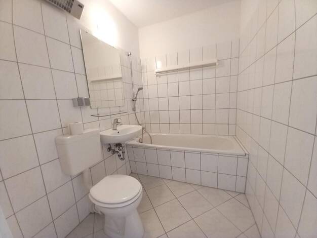Mehrfamilienhaus, ruhige Wohnlage, Erdgeschoss, Flur, Bad mit Wanne, WC, Handwaschbecken und Fenster, Küche mit Fenster, Kinderzimmer, Wohnzimmer mit Zugang zum Balkon, Schlafzimmer