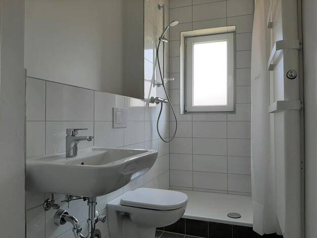 Von dem Flur aus erreichen Sie das Schlafzimmer, das Badezimmer und die Küche. Von der Küche aus gelangen Sie anschließend ins Wohnzimmer. Das Badezimmer ist mit einer Badewanne ausgestattet und ein Fenster sorgt für ausreichend Tageslicht. Vor dem Einzug werden alle Schalter und Steckdosen erneuert. Die Wände und Decken werden mit Raufaser tapeziert und weiß gestrichen. Sämtliche Türen und Zargen sowie die Heizkörper erhalten ebenfalls einen Neuanstrich. Das Tageslichtbad wird mit neuen Sanitä...