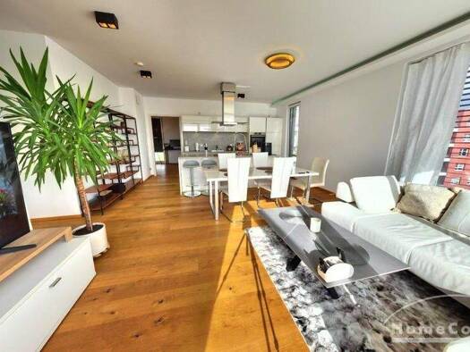 Eindrucksvolles Penthouse im Hafengoldprojekt von Offenbach, and der Grenze zu Frankfurt. Komplett hochwertig möbliert & ausgestattet. Ausstattung Wohnen: Große Sofalandschaft und Esstisch Küche:...