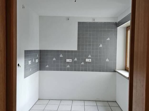 Die Wohnung besteht aus Wohnzimmer, Schlafzimmer, Bad, Küche (Küchenzeile sollte vom Vormieter übernommen werden) und dem nach Westen ausgerichteten Balkon/Loggia sowie einem Abstellraum. Die Küche ist zum Wohnzimmer hin offen. Im Keller befinden sich Wasch- und Trockenraum, ein Fahrradabstellraum sowie ein eigenes Kellerabteil. Im Innenhof ist ein überdachter Stellplatz.