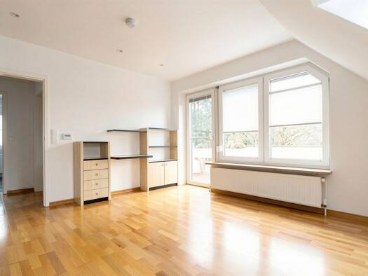 Freuen Sie sich auf eine charmante Dachgeschosswohnung, die urbanes Leben mit angenehmer Ruhe verbindet. Auf rund 55 m² erwartet Sie ein durchdachtes Raumkonzept mit einem hellen Wohnzimmer, einer gut ausgestatteten Küche, einem gemütlichen Schlafzimmer sowie einem Tageslichtbad. Bereits beim Eintreten empfängt Sie ein großzügiger Flur mit praktischem Einbauschrank, der sich ideal als Garderobe nutzen lässt. Rechts davon öffnet sich der Wohnbereich, der bereits stilvoll eingerichtet ist und dir...