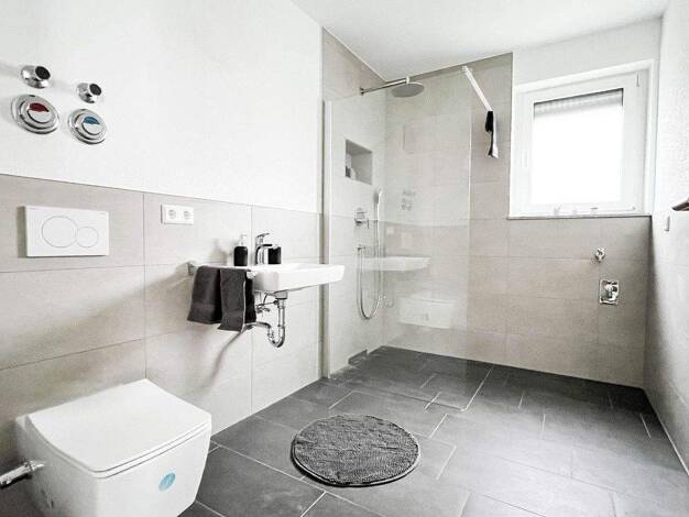 Ausstattung: - offener Wohn- und Essbereich mit integrierter, moderner Einbauküche. - Bad mit Dusche (barrierefrei) - Bad raumhoch gefliest (weiß/grau) - Fußbodenheizung - Vinyl-Boden in Holzoptik - ...