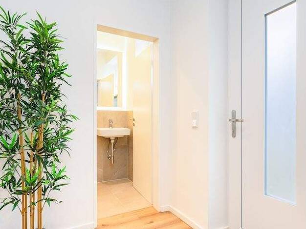 Zentral, energieeffizient, stylisch, smart sowie ohne Einrichtungsstress. Urbaner Luxus auf kleinem Raum – mit maßgefertigter Möblierung, stylischem Kingsize-Wandbett, gemütlicher Couch, funktionalem...