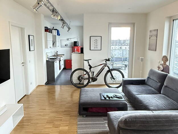 Die großen Fenster dieser schönen 2,5-Zimmerwohnung schaffen Ihnen den ganzen Tag über einen lichtdurchfluteten Raum. Innerhalb diesen Raumes bietet Ihnen die offene Küche, der Wohn- und Essbereich sowie das Schlafzimmer die Möglichkeit, Ihre neue Wohnung nach Ihren individuellen Wünschen und Vorstellungen einzurichten.
