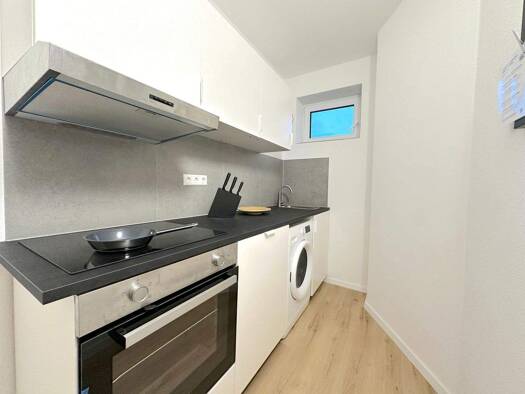 Die optimal geplante 1-Zimmer Wohnung befindet sich in Gebäude mitten im Europaviertel direkt am Messegelände. Mit den öffentlichen Verkehrsmitteln sind Sie in ca. 10 Minuten in der City. Restaurants...