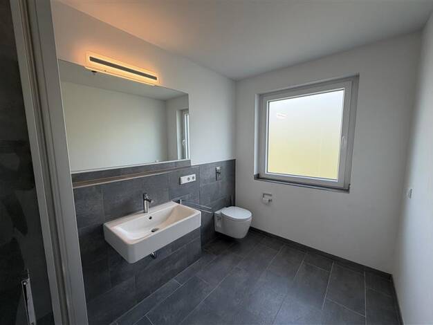 Ein moderner KFW40+ Gebäudekomplex inkl. Aufzug der zum 01.01.2023 fertiggestellt wurde. Es handelt sich hier um die 3 Zimmer Wohnung Nr. 59/01 im Erdgeschoss. Fußbodenheizung, eine Lüftungsanlage mit Wärmerückgewinnung, 3-fach Verglasung, elektr. Raffstoreanlage/ Rollladen, eine Videosprechanlage sowie eine Badewanne gehören zum Standard und stellen nur einen kleinen Teil der umfangreichen Ausstattung dar. Die Wohnung ist mit einer Einbauküche ausgestattet.