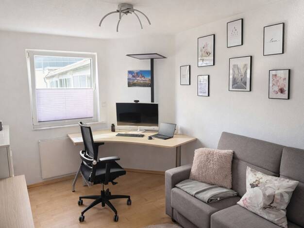 Objektbeschreibung: Diese charmante und voll möblierte 5-Zimmer-Maisonette-Dachgeschosswohnung bietet auf insgesamt 95 m² modernen Wohnkomfort in bester Lage. Der offene Grundriss und die moderne Einbauküche schaffen eine angenehme Wohnatmosphäre. Die Balkon-Terasse lädt zum Entspannen ein und bietet einen herrlichen Blick auf einen sehr gepflegten grünen Garten. Die hellen und komplett neuen Badezimmer überzeugen mit einer hochwertigen Ausstattung. Dank der Möblierung kannst du sofort einziehe...
