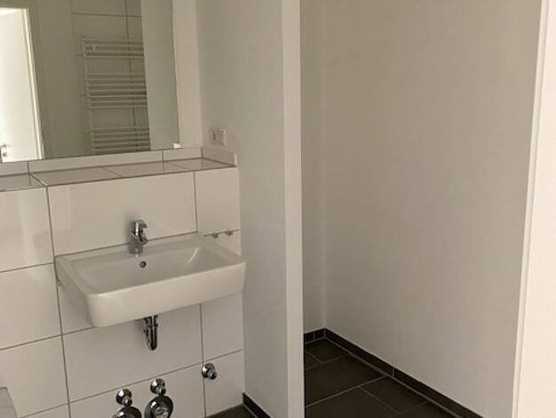Durch die Aufstockung eines bestehenden Mehrfamilienhauses in Grevenbroich-Süd ist diese moderne Wohnung entstanden, es handelt sich um Erstbezug. Ihr neues zu Hause liegt zwar in der vierten Etage, ist aber bequem durch den neu angebauten Aufzug barrierefrei erreichbar. Freuen Sie sich auf eine moderne Wohnung mit modernem Zuschnitt. Die Küche wurde in den Wohnraum integriert. Die Wände sind Raufaser-weiß tapeziert und der Boden mit modernem Vinyl ausgestattet. Das Bad ist anthrazit/weiß gefli...