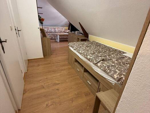Objektbeschreibung Die Wohnung befindet sich im Dachgeschoss eines gepflegten Fachwerkhauses und überzeugt durch ihren besonderen Charakter. Raumaufteilung - Die Wohnung ist frisch renoviert und komp...