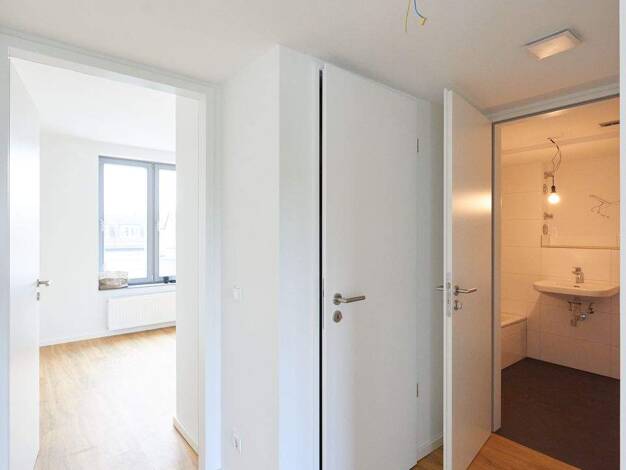 Die Wohnung liegt in einem modernen Neubau mit hochwertiger Ausstattung. Durchdachte Grundrisse und große Fensterfronten sorgen für helle, freundliche Räume.