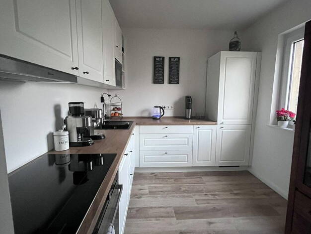 Schöne Wohnung in Zweifamilienhaus im 2.OG, ruhige Wohnlage. Wohnzimmer mit Couch, Anrichte, DVBT-TV. 1. Schlafzimmer mit Bett 100x200 cm, Kleiderschrank, Tisch, Stuhl. 2. Schlaf/Arbeitszimmer mit Bett 100x200 cm, Kleiderschrank, Tisch, Stuhl. Neue Einbauküche mit Ceranfeld, Backofen, Kühlschrank, Geschirrspüler, Waschmaschine, Tisch mit 3 Stühlen. Duschbad/WC. ------ kalt möbliert kostet die Wohnung 980 € Nebenkosten Gas Wasser Strom extra 380 Euro Kaution beträgt 2 Warmmieten ------ Deutsche ...