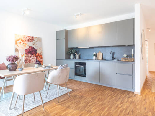 Entdecken Sie Ihr neues Zuhause in dieser modernen Wohnung. Mit einer Wohnfläche von 66 m² bietet diese 2-Zimmer-Wohnung ein unvergleichliches Wohnerlebnis. Vom geräumigen Wohnbereich gelangen Sie auf die nach Westen ausgerichtete Loggia. Das Badezimmer ist in grau gefliest und verfügt über eine Dusche. Eine Einbauküche steht bei einem renommierten Möbelhändler konfiguriert auf Abruf bereit und wird zur Nutzung überlassen. Die Wohnung befindet sich im 1. OG eines neu errichteten Gebäudes und is...