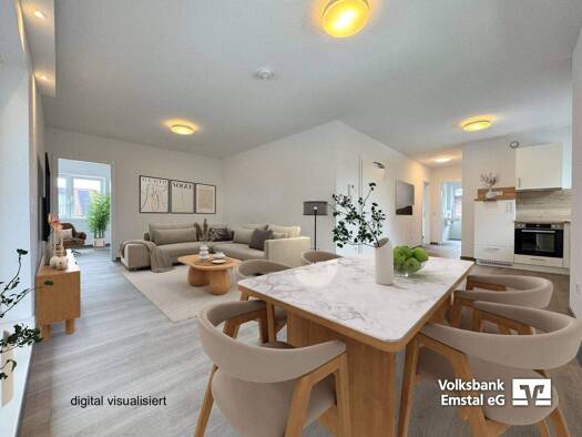 Diese moderne Obergeschosswohnung bietet auf rund 64 m² ein komfortables Zuhause mit einer gelungenen Mischung aus Helligkeit, Funktionalität und ansprechender Gestaltung. Der offen gehaltene Wohn- u...