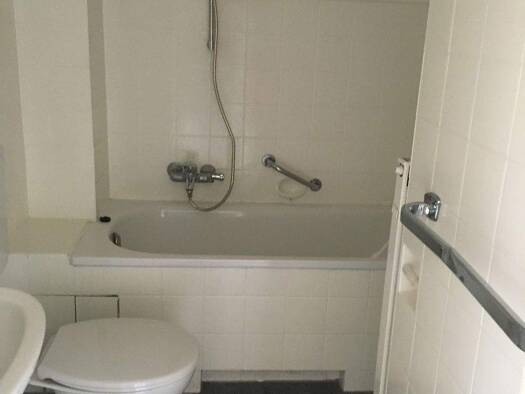 Die Wohnung liegt in der ersten Etage eines 6-Familienhauses und ist im Flur und Wohnzimmer mit einem Laminatboden ausgestattet, sowie im Bad mit einem Fliesenboden. In den übrigen Räumen kann der Bo...