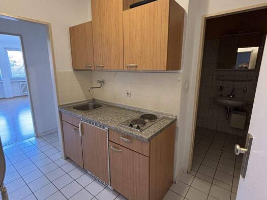 Die Wohnung befindet sich im 1 Og des Mehrfamilienhauses. Das Tageslicht Bad mit Badewanne. Von der Küche aus geht es ins Esszimmer und auf den Balkon. Die Küche ist unmöbliert und hat einen Fliesens...