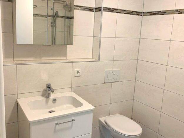 1-Zimmerappartement mit kleiner Küche und modernem Bad. 12 Parkplätze stehen im Hof kostenlos zur Verfügung. Im Haus wohnen 24 Parteien.