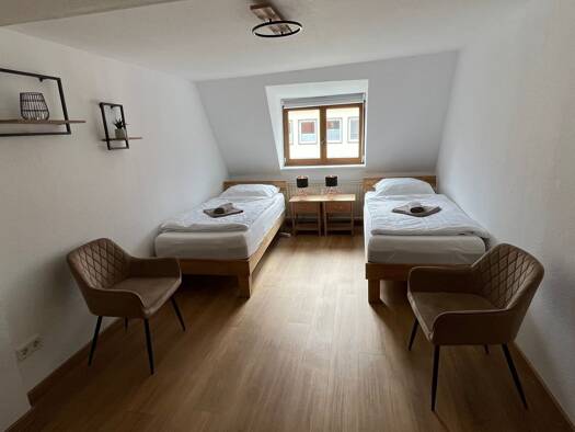 Die große, helle, neu renovierte Wohnung befindet sich in einer verkehrsberuhigten Nebenstraße, 7 Gehminuten vom Stadtzentrum. T-Gut, Aldi, Edeka, Herkules Baumarkt und Rewe sind in 6-7 Minuten zu Fu...