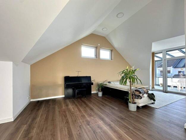 Entdecken Sie diese stilvolle 3-Zimmer-Wohnung im Dachgeschoss eines exklusiven Mehrfamilienhauses mit nur sechs Wohneinheiten. Hier vereinen sich hochwertige Architektur und pure Ruhe zu einem harmo...