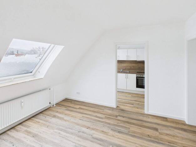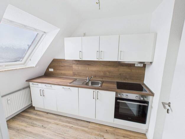 - Lichtdurchflutete 2 ZKB auf 2 Etagen ca. 75 qm, 2. OG/DG - in der 1. Etage befindet sich die Wohnküche und das Badezimmer - neuwertige Einbauküche (Eigentum Vermieter) - Badezimmer mit Fenster, Dus...