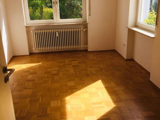 Objektreferenz: 1613-5002 Die generalsanierte lichtdurchflutete Wohnung mit Fußbodenheizung liegt im Erdgeschoss des Hauses, mit Fenstern nach allen Richtungen und Blick über den Garten. Die Zimmer sind quadratisch geschnitten und gut einzurichten. Das Haus ist ein ehemaliges Gästehaus, so dass praktischerweise zu jedem Zimmer ein eigenes Mini-Badezimmer mit Dusche gehört. Im Wohnraum integriert ist eine moderne Küche mit Kochinsel. Vom Wohnraum aus gelangt man auf den gemütlichen Balkon/Loggia...