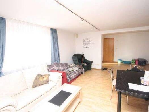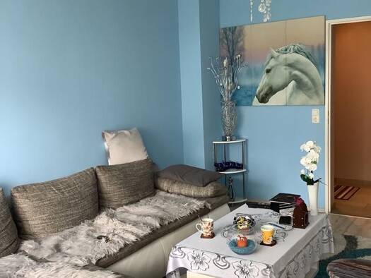 Die Wohnung liegt im 1. OG eines Mehrfamilienhauses und bietet ein Wohnzimmer, eine Küche, zwei Schlafräume, ein Badezimmer und einen Flur. Kellerraum gehört hinzu.