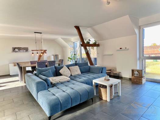 Diese moderne, lichtdurchflutete Vier-Zimmer-Wohnung befindet sich im Dachgeschoss eines gepflegten Zwei-Parteien-Hauses in einer begehrten Wohnlage von Hückelhoven-Ratheim. Auf ca. 123 m² Wohnfläche erwarten Sie ein großzügiger Wohn- und Essbereich, eine separate Küche sowie drei flexibel nutzbare Zimmer. Das stilvolle Tageslichtbad ist mit einer komfortablen Dusche ausgestattet. Ergänzt wird das Raumangebot durch einen praktischen Abstellraum außerhalb der Wohnung sowie einen einladenden, ger...