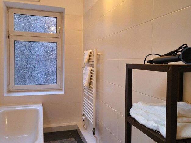 Helle, frisch renovierte 2,5-Zimmer-Wohnung mit gemütlichem Wohnzimmer, Schlafzimmer mit 1,60 m Doppelbett, separatem Arbeitszimmer und modernem Badezimmer. Vom Wohnzimmer führt der Zugang auf den ru...