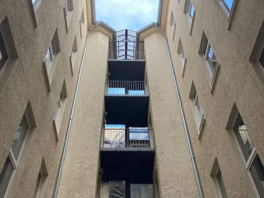 Die charmante Maisonette in der sanierten historischen Remise im Innenhof. Im Erdgeschoß befinden sich der Garderobenbereich, der Koch- / Ess- und der Wohnbereich, sowie Gäste-WC und ein Abstellraum. Im 1.OG befindet sich das helle Tageslichtbad mit Dusche und Badewanne, ein großes Schlafzimmer und ein Kinderzimmer,. Die Deckenhöhe variiert von 3,20 bis 4,20 Meter. Große Holzfenster, Echtholzparkett, eine Holztreppe und italienische Feinsteinzeugfliesen schaffen eine behagliche Atmosphere. Zusä...