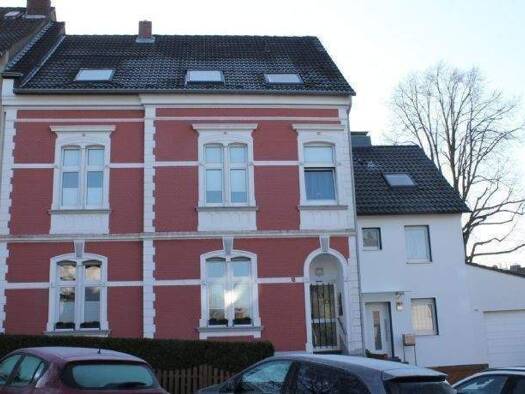 Die Wohnung liegt im 1. Obergeschoss eines rot verklinkerten Vierfamilienhauses aus dem ursprünglichen Baujahr 1910. Das Gebäude wurde über die Jahre kontinuierlich instand gehalten und an heutige Wohnstandards angepasst. Von den insgesamt vier Wohneinheiten sind derzeit zwei bewohnt, wobei sich eine davon in einem Anbau im hinteren Bereich des Hauses befindet. Die Wohnung verfügt über eine Wohnfläche von ca. 80 m² und die Raumaufteilung gestaltet sich wie folgt: langer Flur, geräumiges Wohnzim...