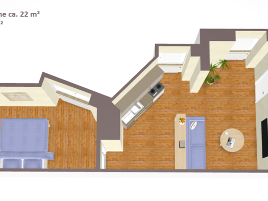 Die interessant geschnittene 2-Raumwohnung befindet sich im Dachgeschoss des Wohnhauses - ein Aufzug ist nicht vorhanden. Hier oben haben Sie Ihre Ruhe, denn alle Fenster sind zum Hof ausgerichtet. D...