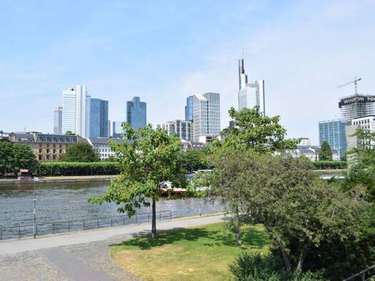 Bitte beachten Sie: Die Wohnung ist komplett möbliert und ausgestattet. Die Gesamtmiete beinhaltet die Nebenkosten. Gesamtmiete 1690,- Eur inklusive Nebenkosten * Fantastischer Blick auf die Frankfurter Skyline * Waschmaschine in der Wohnung * Moderne Wohnanlage in zentraler Lage * Wohnung ausgerichtet auf ruhigen, grünen Hof Kernsaniertes Apartmenthaus (moderne Wohnanlage), Bj. 1892, 4. Etage, mit Lift * Wohnräume: Großes Wohn-Esszimmer mit Sitzgruppe und Esstisch mit Stühlen Freundliches Schl...