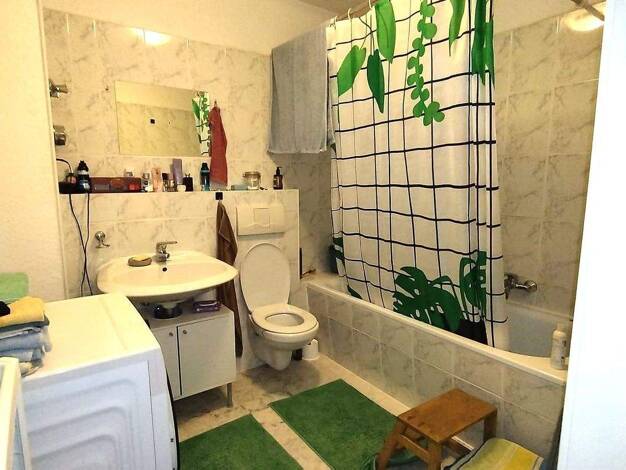 sanierte Wohnung in ruhigem voll vermietetem Haus, Bad wurde neu gefliest und hat neue Badkeramik und eine Echtglasduschabtrennung erhalten. Der Bodenbelag wurde erneuert , hochwertiger Vinyl Boden. Die Zimmertüren sind neu. Wände glatt gespachtelt und weiß gestrichen