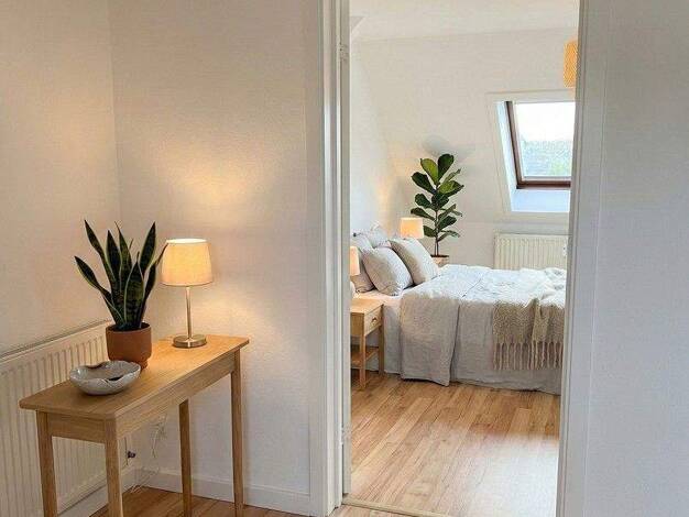 Objektbeschreibung Willkommen in Ihrem neuen Zuhause! Diese charmante 2-Zimmer-Dachgeschosswohnung in der Ferdinand-Jost-Straße wurde gerade aufwendig und mit viel Liebe zum Detail renoviert. Hier trifft gemütliches Wohnen unter den Schrägen auf modernen Standard. Die Highlights der Wohnung im Überblick: Frisches Design: Alle Wände wurden fachmännisch renoviert und erstrahlen in hellem Glanz. Hochwertige Böden: In der gesamten Wohnung wurden neue, moderne Fußbodenbeläge verlegt, die für eine wa...