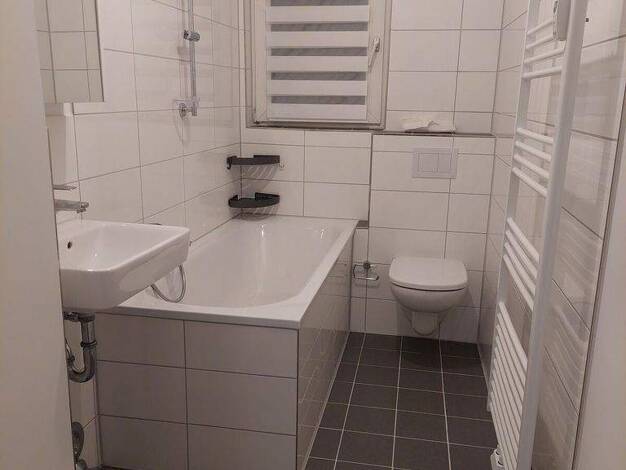 • gepflegte Wohnung im 1. Obergeschoss, acht Wohneinheiten, ruhige Wohngemeinschaft • ca. 70 m² Wohnfläche, 2 Zimmer, plus Kellerraum • heller großer Wohnbereich, geräumige Küche mit Platz für einen Essbereich • Wannenbad mit Fenster, weiße Sanitärobjekte, weiße Fliesen • Laminat im Wohn- und Schlafbereich sowie Fliesen in Küche und Bad • Platz für Waschmaschine und Trockner im Waschkeller • Gartenmitbenutzung • Lage: zentrumsnah in einem ruhigen Wohngebiet, Ärzte und Einkaufsmöglichkeiten sind...