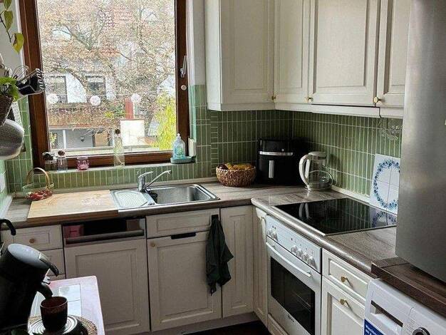 Renovierte 3-Zimmer-Wohnung, die Elektrik wurde komplett erneuert, ebenso das Bad, es hat neue helle Wandfliesen und dunkle Bodenfliesen erhalten, sowie eine neue Dusche. Der Fliesenspiegel in der Kü...