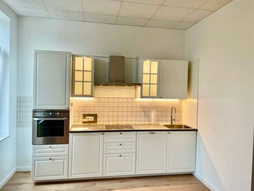 Diese attraktive Zwei-Zimmer-Wohnung mit ca. 78 m² Wohnfläche befindet sich im ersten Obergeschoss eines gepflegten Wohnhauses in zentraler Lage, nur wenige Gehminuten vom Bahnhof entfernt. Die Wohnung wurde komplett renoviert und präsentiert sich in einem modernen, zeitgemäßen Zustand. Der großzügige Wohnbereich lässt sich in Wohn- und Essbereich aufteilen. Vorhanden ist außerdem ein Schlafzimmer, ein neues Bad mit ebenerdiger Dusche und eine Küche mit neuer Einbauküche (ohne Kühlschrank) und ...