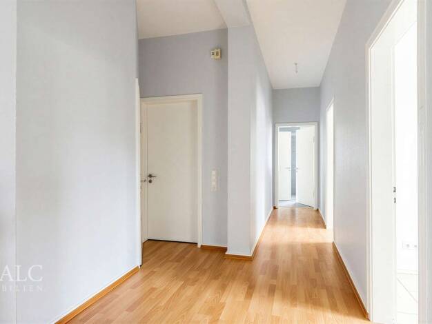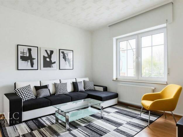 Im Obergeschoss des Hauses befindet sich eine schicke, großzügige 3,5-Zimmerwohnung. Die Wohnung besteht aus einem geräumigen Wohnzimmer, einer großen Küche mit Platz für einen Esstisch, einem Elternschlafzimmer mit eigenem Bad und Ankleidezimmer, einem Kinderzimmer zur Gartenseite, einem Gäste-WC sowie einem weiteren Badezimmer. Beide Bäder verfügen über Duschen mit flacher Duschtasse. Abweichend zum Grundriss ist in der Wohnung keine Badewanne verbaut. Edle Vinylböden in Holzoptik, verbunden ...