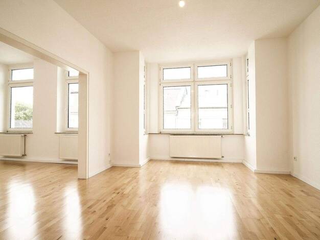 Wunderschöne und - durch reichlich Fenster - sehr helle Wohnung im 2. Obergeschoss eines Altbaus. Neben einem äußerst großzügigen Wohnzimmer (31 qm) bietet Ihr neues Domizil 2 Schlafzimmer, 1 Duschba...