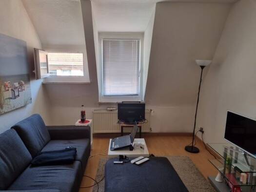 Diese Dachgeschosswohnung liegt in einer ruhigen Sackgasse zwischen Naherholungsgebieten, mit sehr guter Anbindung an die Innenstadt und bietet eine einladende Mischung aus Gemütlichkeit und Funktionalität, ideal für Paare oder Familien mit maximal 4 Personen ohne Haustiere. • Durchdachte Raumaufteilung mit zentralem Flur und Zugang zu allen Räumen: ◦ das große Wohn-/Esszimmer mit Balkon, ◦ die moderne Einbauküche, ◦ das Tageslichtbad und das separate WC, ◦ sowie drei individuell nutzbare Zimme...
