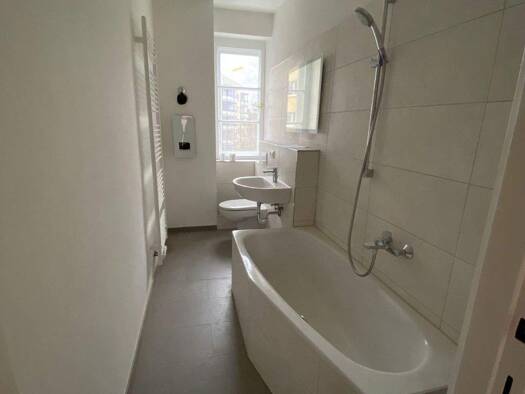 Diese hochwertig kernsanierte 3-Zimmerwohnung befindet sich in der 1. Etage eines gepflegten, unterkellerten 3-Familienhauses aus dem Baujahr 1930 und verbindet den klassischen Charme eines Altbaus mit modernem Wohnkomfort. Die Wohnung wurde umfassend modernisiert und wird im Erstbezug nach Kernsanierung angeboten. Dank der großzügigen Raumaufteilung, der hellen Räume sowie der ruhigen und grünen Umgebung bietet diese Wohnung ein besonders angenehmes Wohnambiente. Bereits beim Betreten der Wohn...