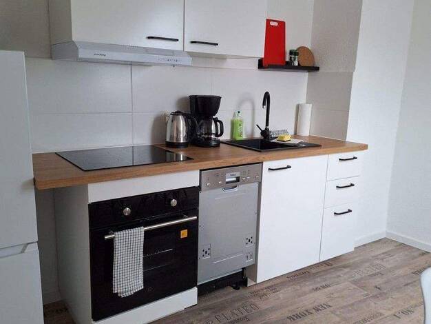Gerne können Sie einen Besichtigungstermin mit der Vermieterin, Frau Silvia Richter, telefonisch unter 0173-969 92 96 vereinbaren. Diese helle 2-Raumwohnung befindet sich im 1. Obergeschoss eines Mehrfamilienhauses. Die Wohnräume sind mit Laminat ausgelegt und weiß gestrichen. Im Bad und in der Diele befinden sich Deckenspots. Das innenliegende Bad ist mit chicen Wand- und Fußbodenfliesen, Handtuchheizkörper sowie Handtuchhalter und einem Waschmaschinenanschluss ausgestattet. In der Küche befin...