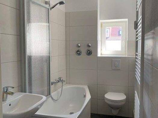 Objektbeschreibung - zentral und dennoch ruhig gelegenes Mehrfamilienhaus bestehend aus Vorderhaus und Hinterhaus - die angebotene Wohnung befindet sich im ruhigen Hinterhaus Raumaufteilung - geräumiger Flur - große Küche mit Fenster und Waschmaschinenanschluss - renoviertes Badezimmer mit Fenster und Badewanne - moderne, neue Gasetagenheizung - Wohnzimmer als Durchgangszimmer - helles und ruhig gegelenes Schlafzimmer zum Innenhof - Wand im Flurbereich in Naturstein-Klinkeroptik