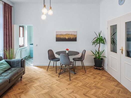 Objektbeschreibung: Helle, gemütliche 2-Zimmer Altbauwohnung im 1.Obergeschoß eines um 1900 gebauten Gründerzeithauses. Die Wohnung ist gut geschnitten, modern und funktional ausgestattet. Hier finden Sie alles, was Sie für Ihr Aufenthalt in Dresden brauchen. Die Wohnung ist hell und ruhig. Die Fenster sind zum Hof ausgerichtet. ------------------------------------- Beautiful, cozy 2-room apartment on the 1nd floor of a Wilhelminian style house built in 1900. The apartment is well designed, mod...