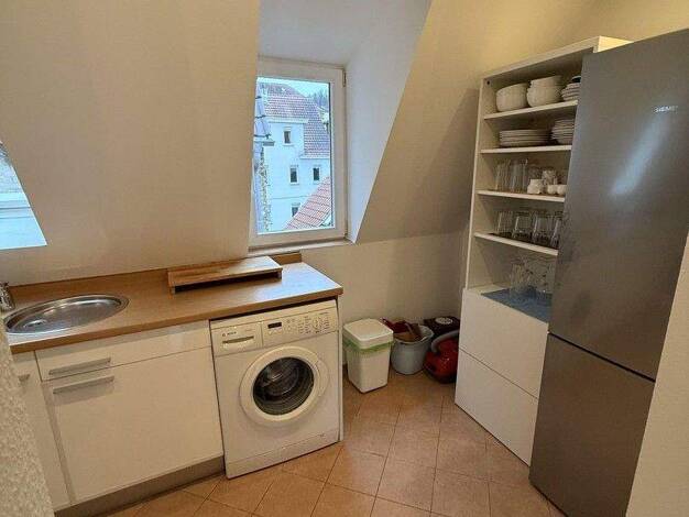 Die komplett möblierte Wohnung mit sehr schöner Aussicht liegt in einem Dachgeschoss eines Kulturdenkmals. Details der Jahrhundertwende sind noch vorhanden. Aufgrund der Größe der Wohnung wird nur an...