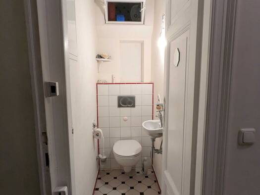 Die Wohnung liegt im 1. Obergeschoss eines historischen Gebäudes mit hohen Decken und Holzböden. Früher befanden sich auf dieser Etage zwei Wohnungen. Diese wurden zu einer großen Wohnung mit 3 Schla...